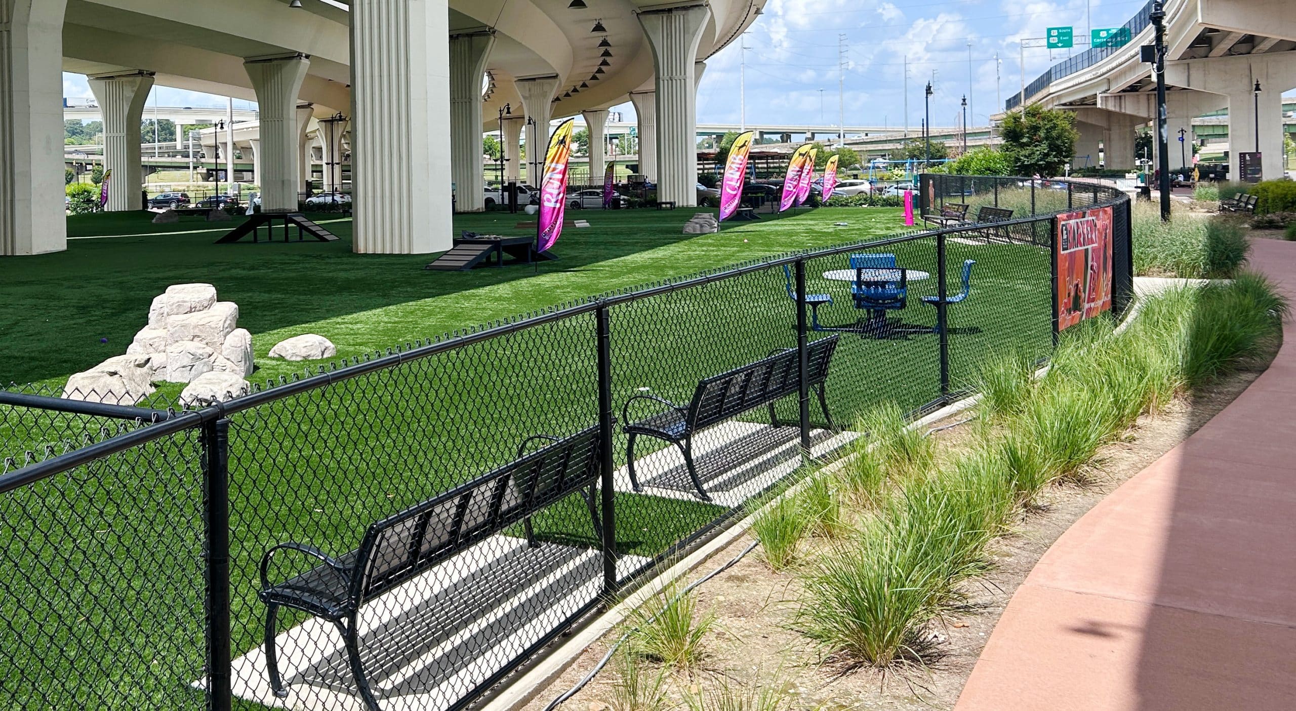 Our Cool Dog Turf – Architectural Series synthetic grass offers an unmatched realness built on a proprietary technology platform that ensures quality of our artificial grass products from the ground up, making your dog park project iconic. Cool Dog Turf is infused with anti-bacterial materials, is earth friendly and provides a waterless, low-maintenance solution that will continue to look realistic, beautiful and functional for years to come — with minimal upkeep. See more details at www.CoolDogTurf.com.